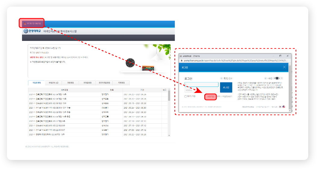 ※ 3번 단계인 포털회원 가입은 완료되었으나, 4번 사회교육원 수강생 정보 입력이 진행되지 않은 경우